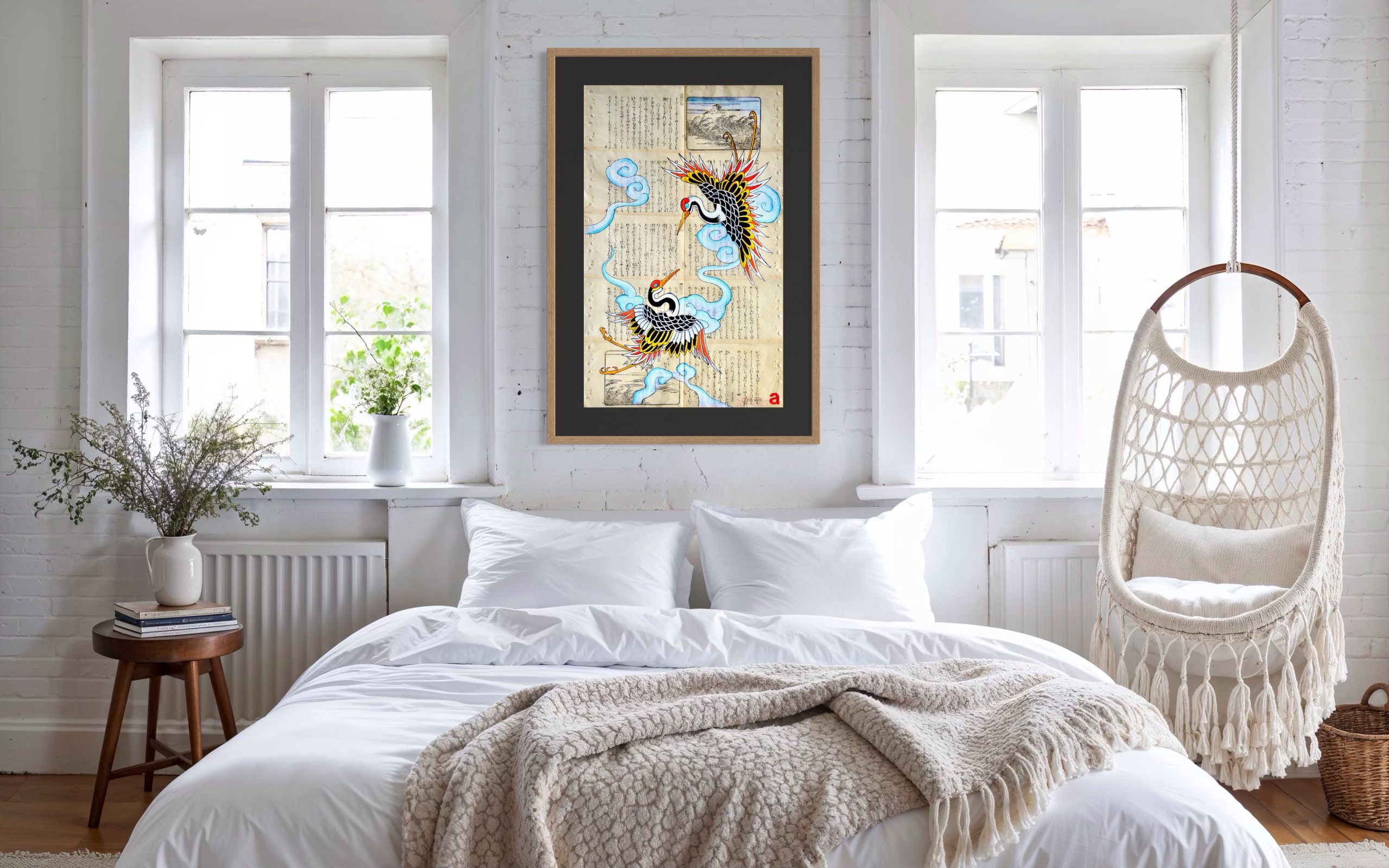 La grulla en la cultura asiática representa longevidad, paz, amor eterno, sabiduría y buena fortuna. Es un símbolo positivo que ha trascendido la religioso y espiritual para convertirse también en un icono cultural y artístico.