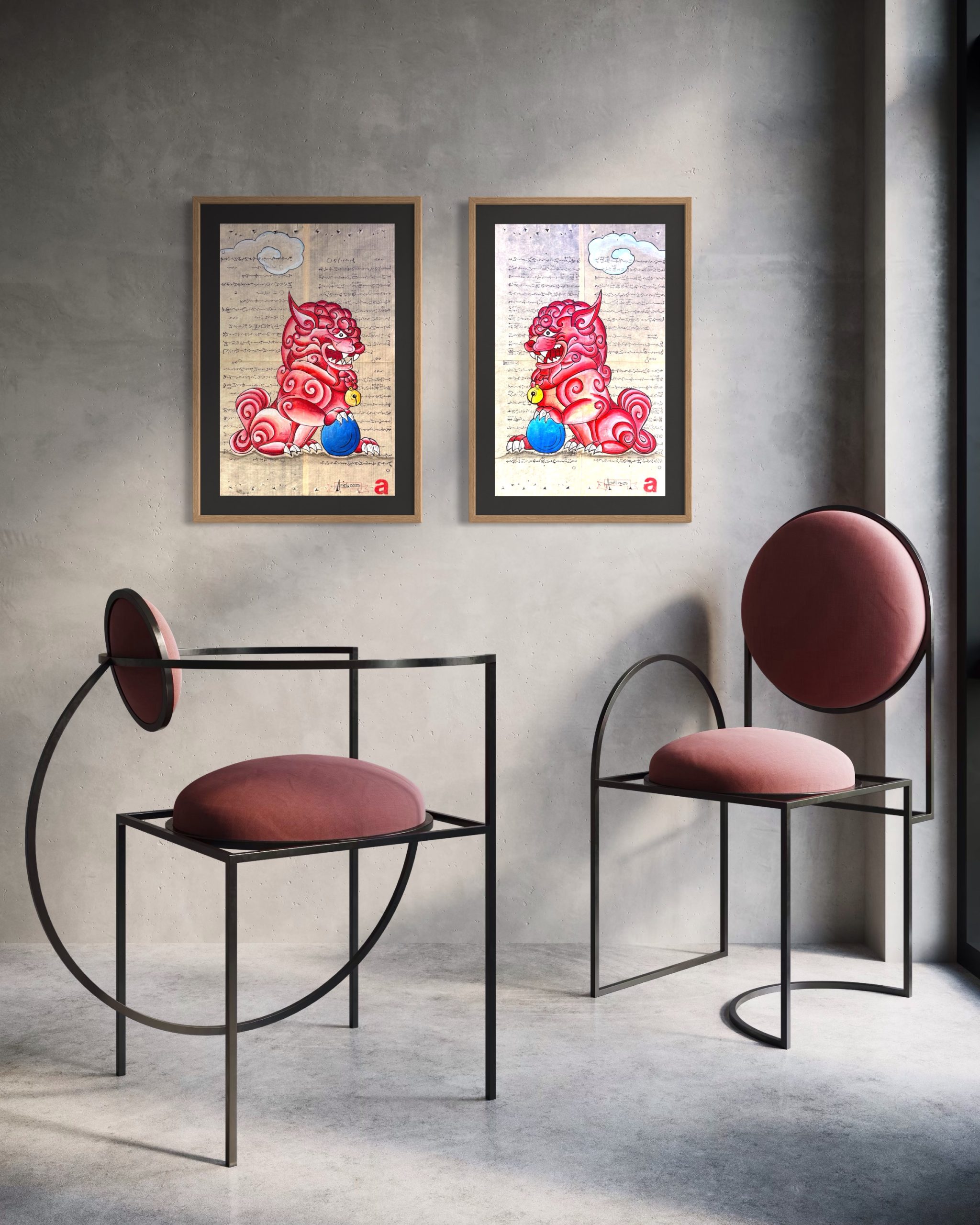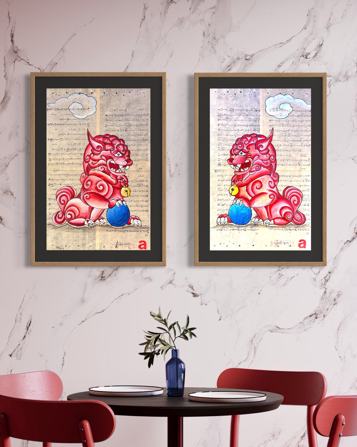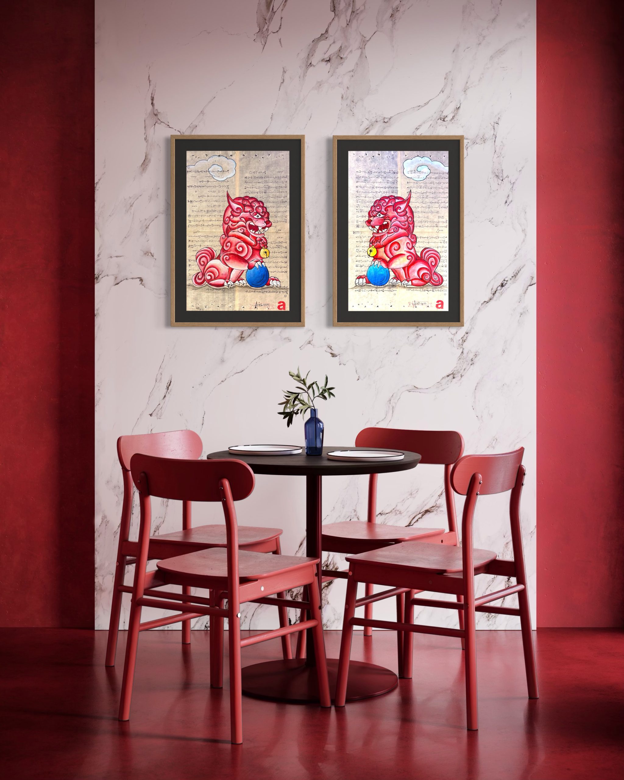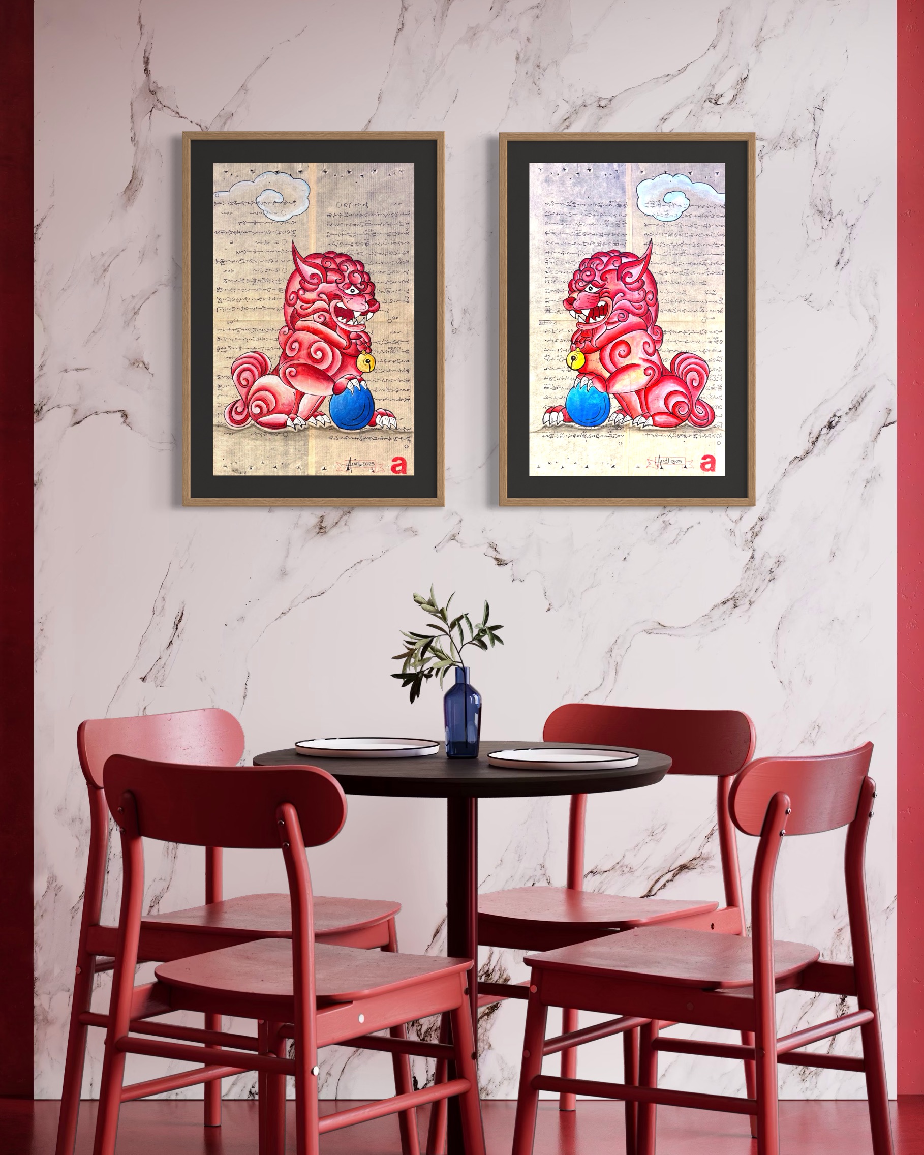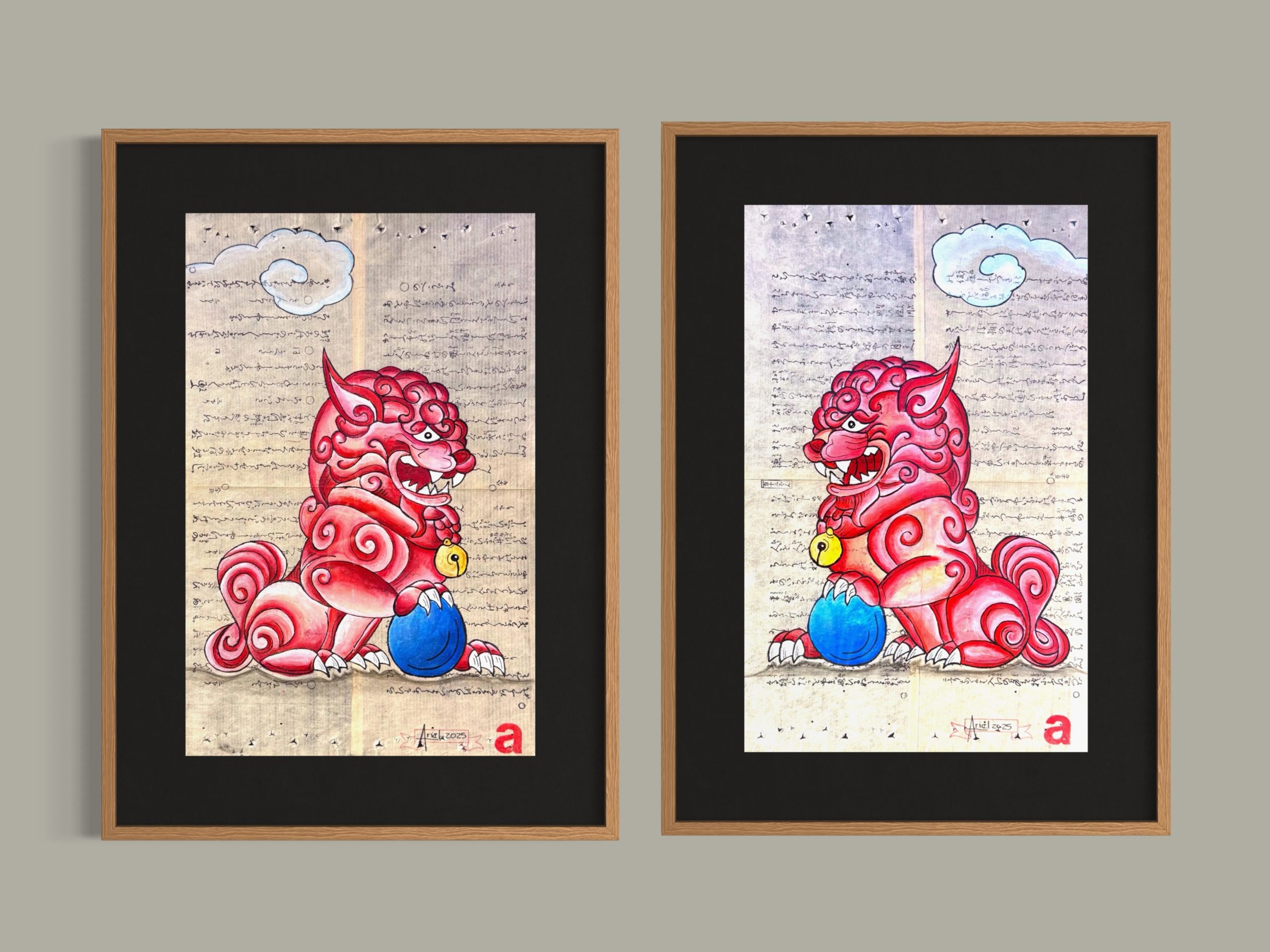 “Perros Foo en papel washi japonés”