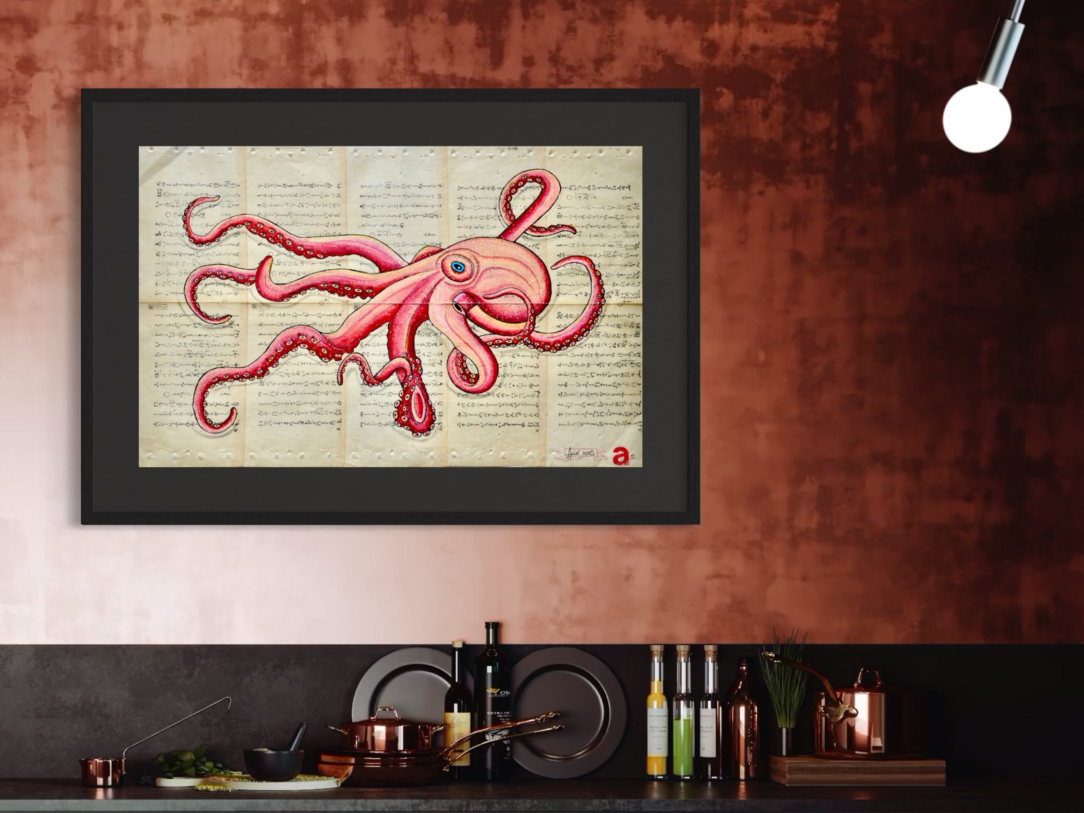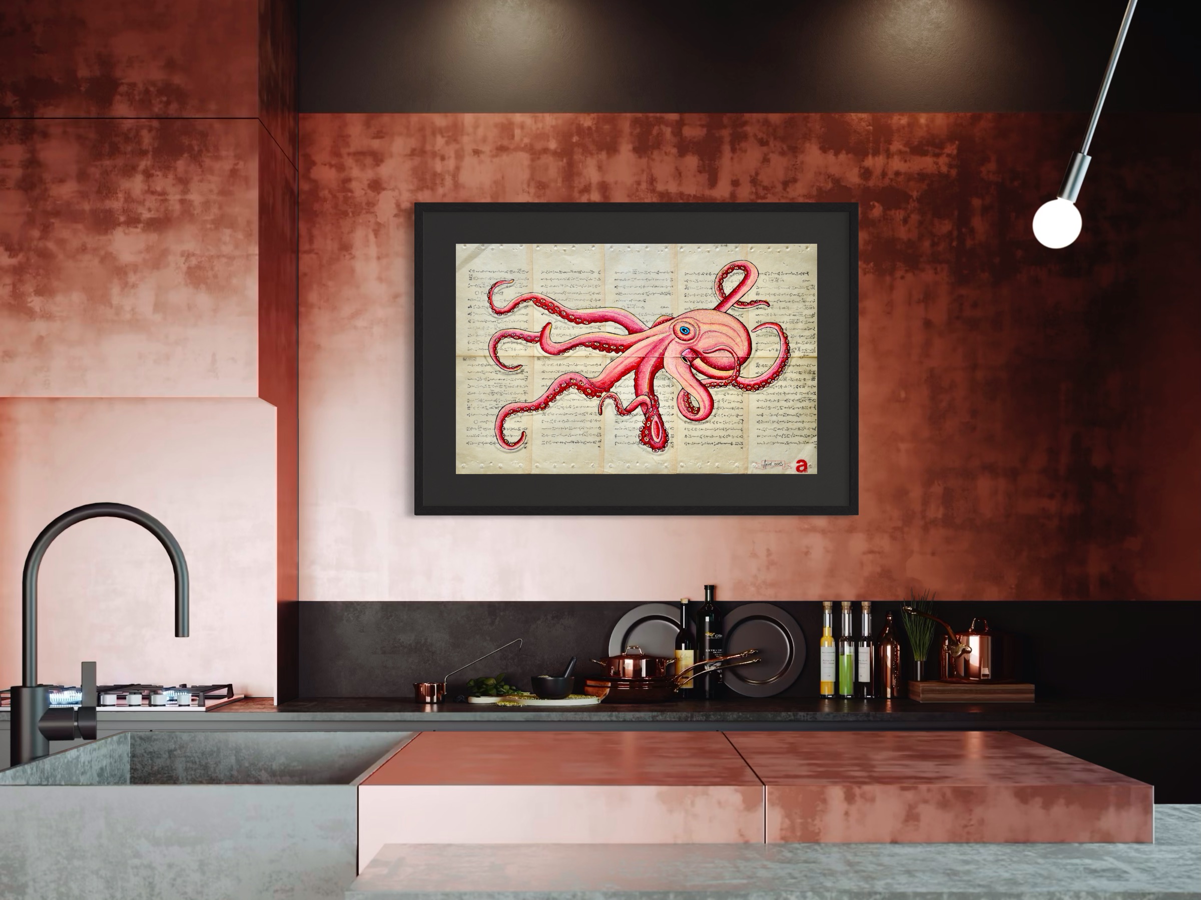 En la cultura asiática, el pulpo simboliza inteligencia, flexibilidad, adaptabilidad y misterio, gracias a sus características físicas como la capacidad de camuflaje y la regeneración de sus extremidades. También está asociado con la persistencia, la fuerza, la superación de la adversidad y la transformación, especialmente en Japón, donde su imagen se combina con la flor de loto para representar el crecimiento personal.