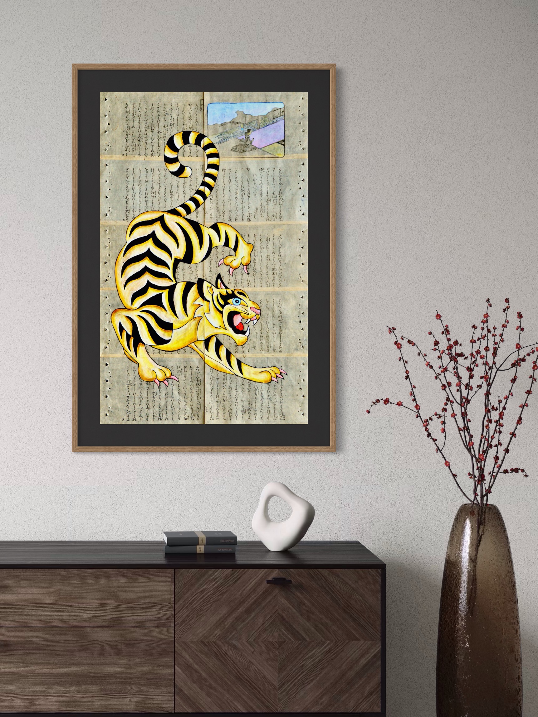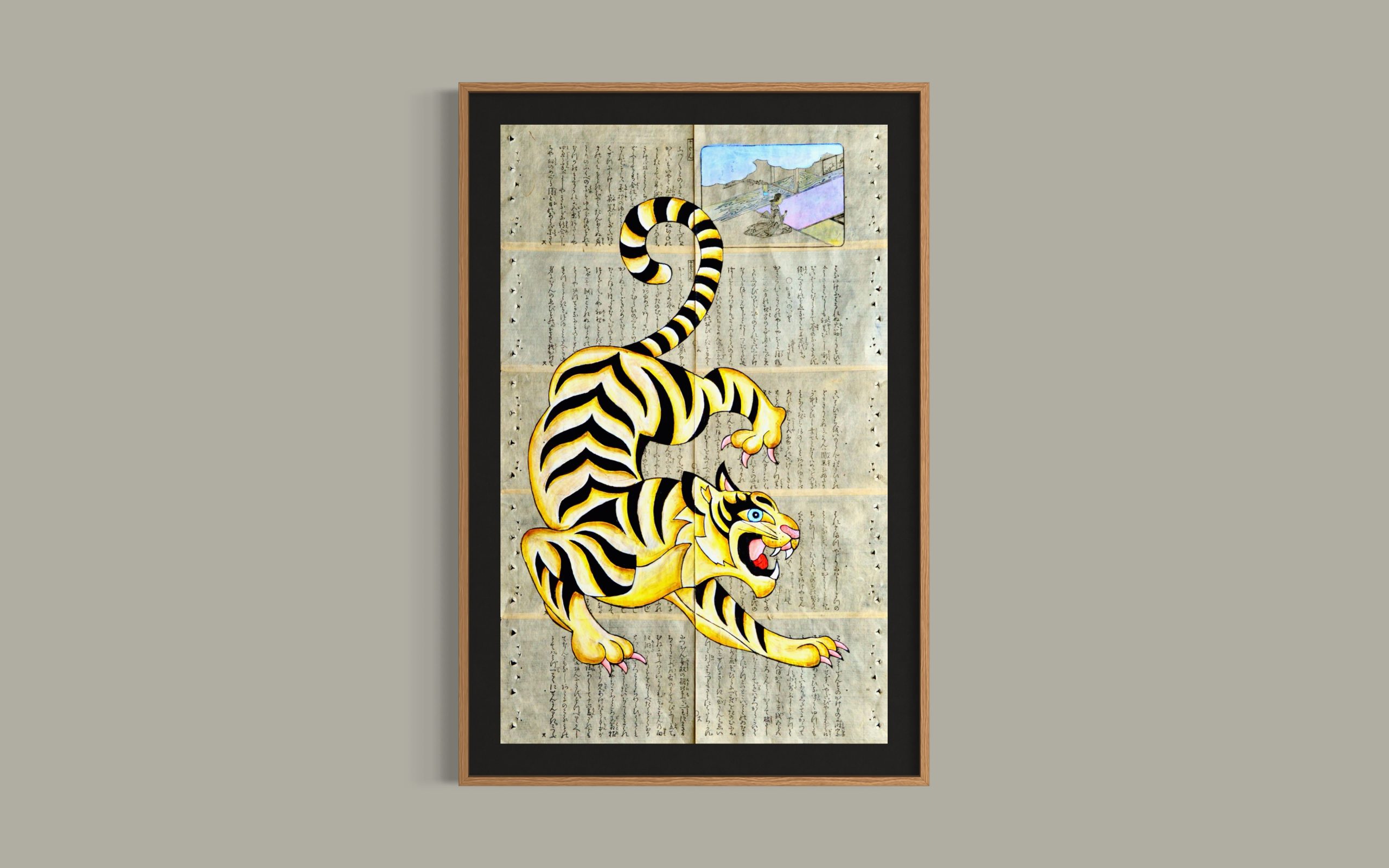 En la cultura asiática, el tigre es un símbolo poderoso de valentía y fuerza física y espiritual. Se le asocia con la buena fortuna y la protección contra el mal. Se creía que colgar imágenes de tigres en los hogares aumentaba el fuego, el robo y otros males. A menudo se le llama el rey de las bestias y se cree que el carácter chino “rey” aparece en su frente.